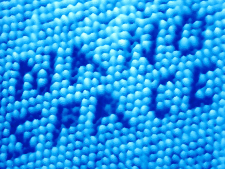 走査型トンネル顕微鏡を用いると、物質表面を原子レベルで観察できるだけでなく、探針先端と表面原子との相互作用を用いて原子操作を行うこともできます。Applied Surface Science60/61,643-647(1993)ほかで発表。